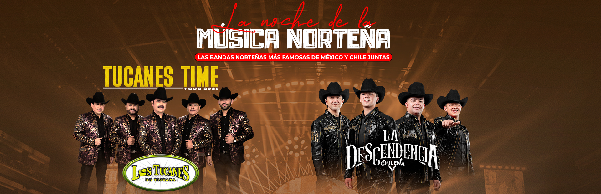 El próximo viernes 5 de diciembre, desde las 21.00 horas, Gran Arena Monticello se llenará de la mejor música ranchera con dos destacadas agrupaciones del género: Los Tucanes de Tijuana, banda que cuenta con cerca de 40 años de carrera y más de 15 millones de discos vendidos y la Descendencia Chilena que se ha convertido en la banda revelación de la música ranchera norteña de nuestro país. Las entradas están a la venta por el sistema Ticketmaster.