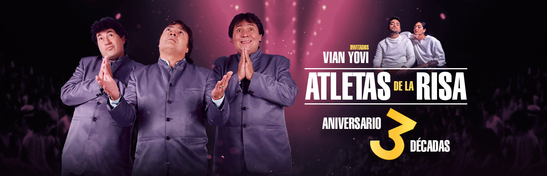 Los Atletas de la Risa llegan a Gran Arena Monticello a celebrar sus 30 años de trayectoria humorística con el espectáculo “A tres décadas” con el que muestran su exitoso recorrido, el que nació en el Paseo Ahumada y que ha llegado hasta el Festival de Viña, el escenario más importante de nuestro país.